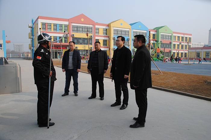 2月28日上午,德州市恒威安保服務有限公司慶云分公司總經(jīng)理李建德、大隊長李雙陪同德州市慶云縣教育局安全科孫科長、楊科長視察指導我公司承擔的高校、中小幼校園安保工作。