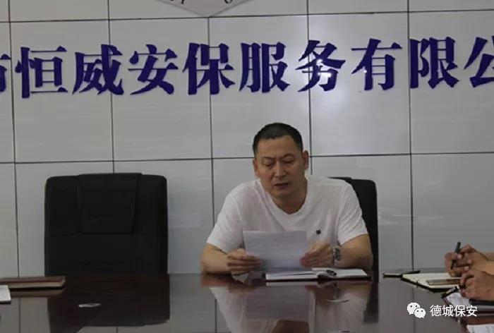 6月3日,德州市恒威安保服務(wù)有限公司召開會(huì)議,提出向感動(dòng)德州十大人物—王洪林,實(shí)驗(yàn)附小崔冠勇、黃有文及經(jīng)濟(jì)開發(fā)區(qū)東風(fēng)東路支行幾位先進(jìn)優(yōu)良保安人員學(xué)習(xí)的倡議。會(huì)議由公司總經(jīng)理王新衛(wèi)主持,全體在家人員參加。